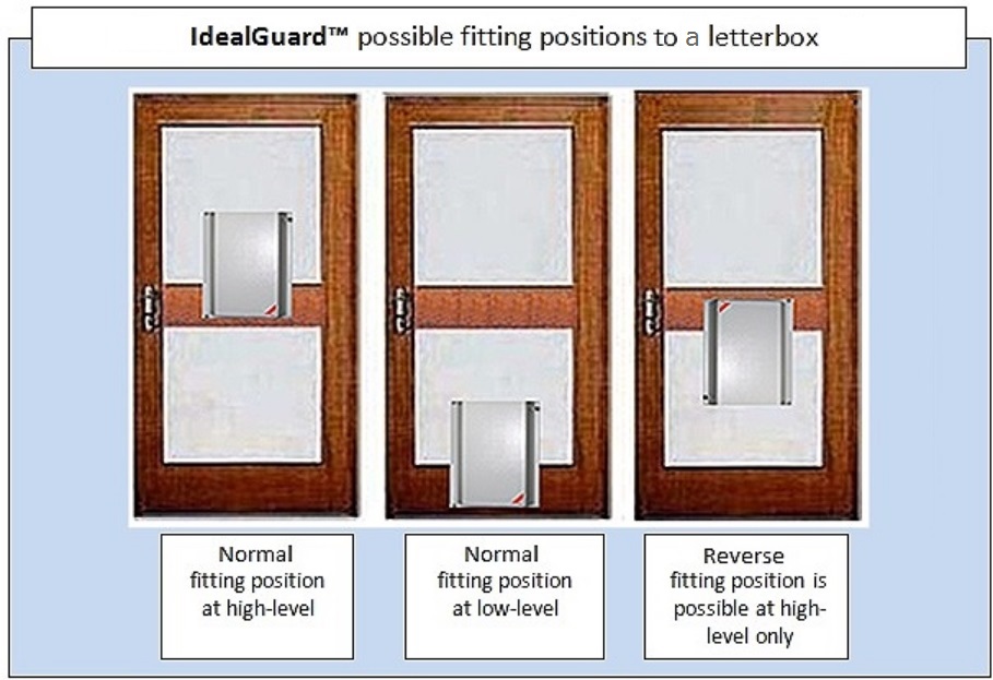 Furthermore, the IdealGuard™ letter box product can be fitted at a high-level in reverse position. In this case, the capacity for mail will be increased twofold, but at the expense of reducing the special security feature against the introduction of liquids.